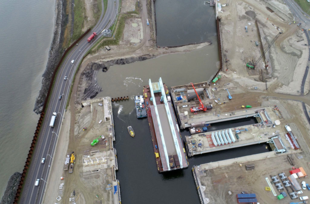 Het invaren en plaatsen van de nieuwe bruggen en sluisdeuren, dat eind januari en begin februari gebeurde, is een belangrijke stap in de aanleg van de sluis, waar BAM sinds eind 2017 aan werkt. Voorafgaand aan de invaaroperatie zijn de betonwerken in de sluishoofden en de sluiskolk gereed gemaakt voor installatie van de deuren en bruggen.