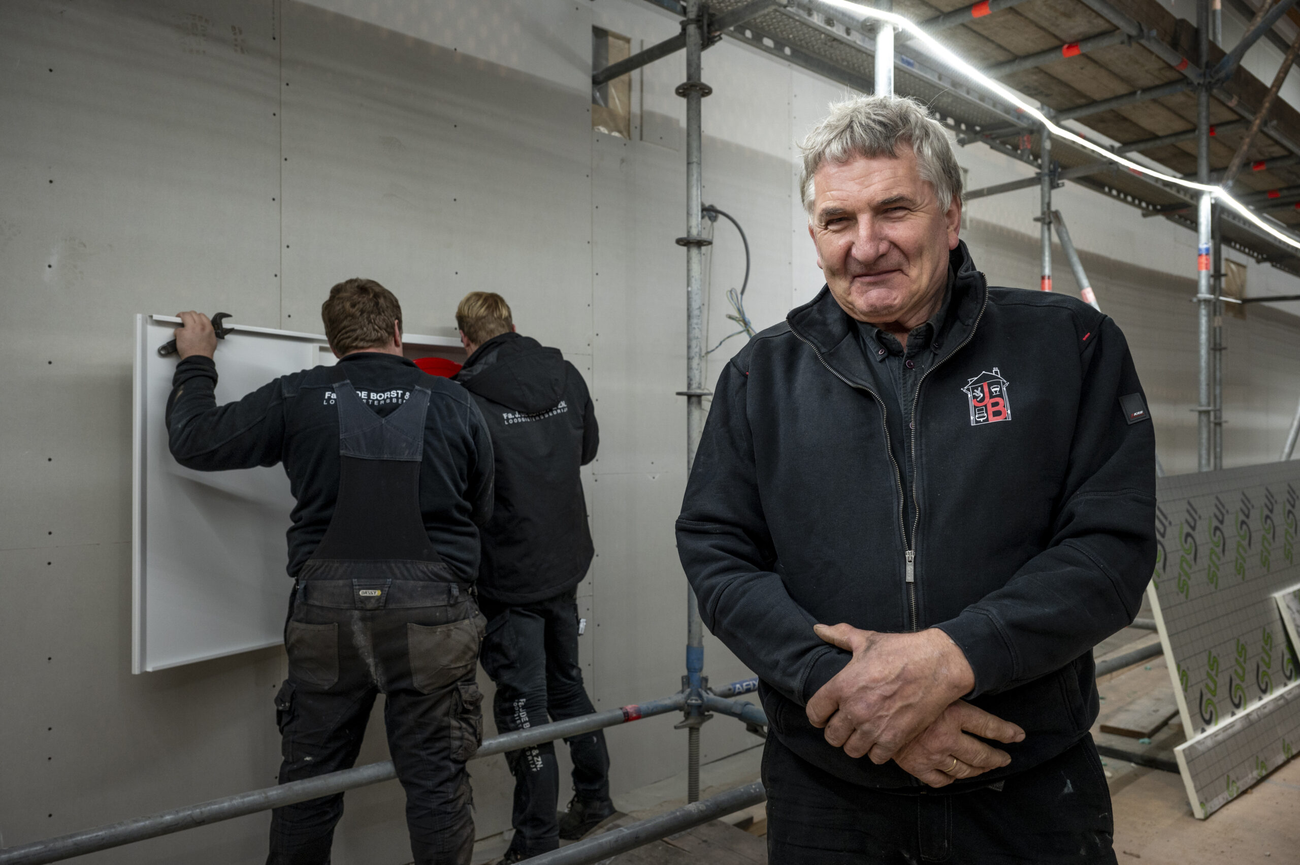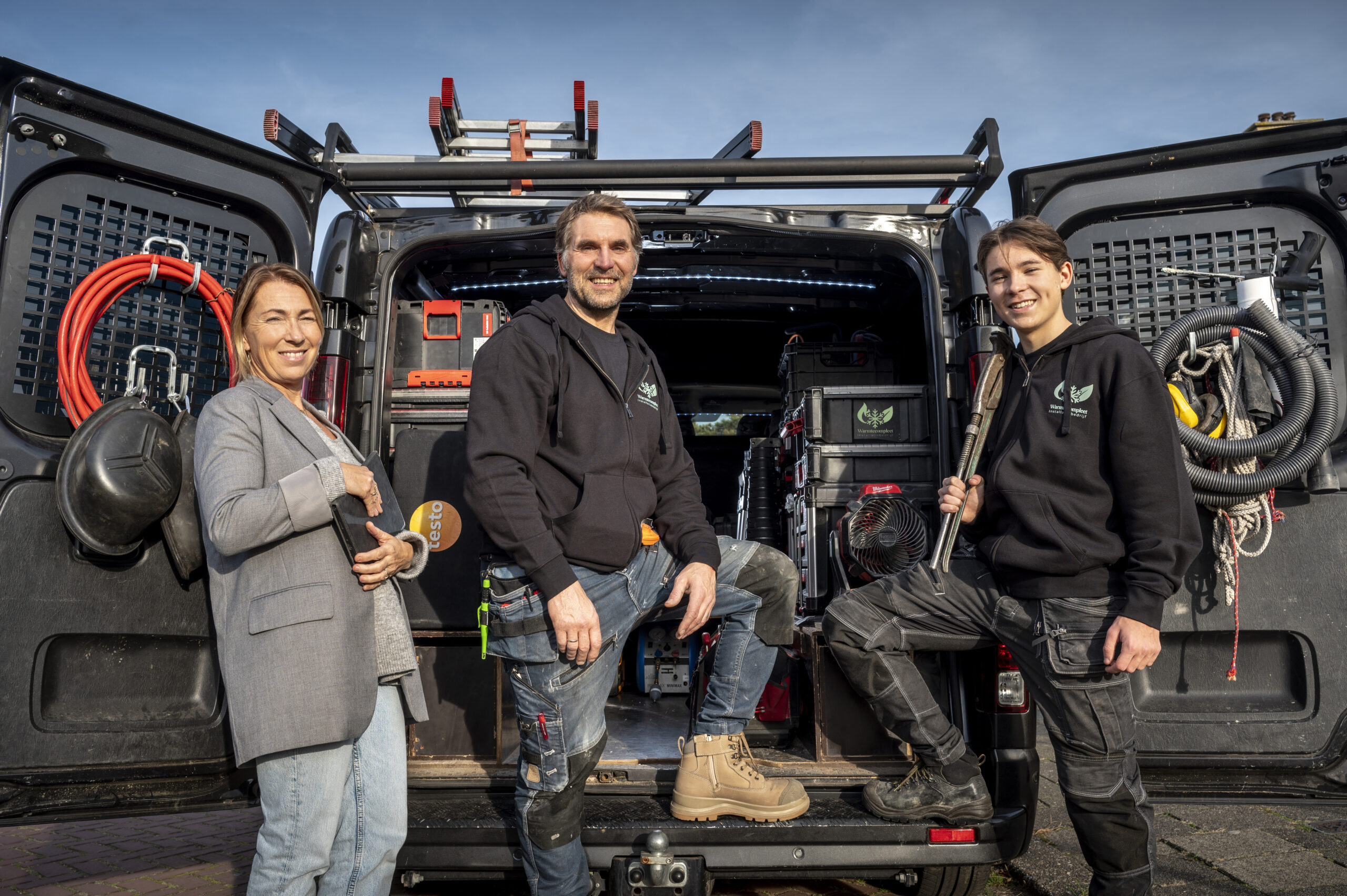 “Ik ben zzp’er en sinds kort werkt mijn jongste zoon Teddi als stagiair mee. Geweldig om hem te zien groeien in het werk, en dat hij het echt leuk vindt. Ik laat hem ook geen gaatjes boren – hij mag meteen met het grote werk aan de slag. Mooi dat ik zo het vakmanschap én het plezier in het werk kan overbrengen. Ik zie dat hij grote stappen zet, en ik hoor van klanten dat ik hem goed ondersteun. Over hulp gesproken: mijn vrouw Nathalie doet sinds drieënhalf jaar de administratie. Samen vormen we een hecht team.”