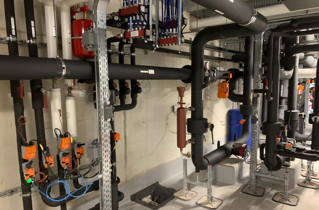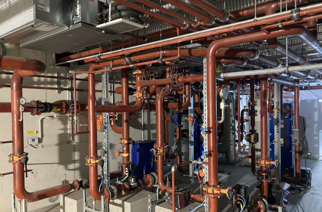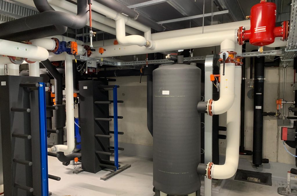 De gebruikte technieken zijn op zichzelf niet nieuw, maar de toepassing hier vroeg wel veel creatief denken. Lems: “In nauw overleg met de constructeur hebben we een flexibel leidingsysteem met kunststof leidingen en verdelers ontworpen en aangelegd. Het klimaatsysteem werkt met een bodemcollectorsysteem vergelijkbaar met betonkern-activering waarbij je de constructie op constante temperatuur brengt. Vergelijkbaar met vloerverwarming, maar dan met energie uit de Rijnhaven. Dat was nog nooit eerder gedaan.”
