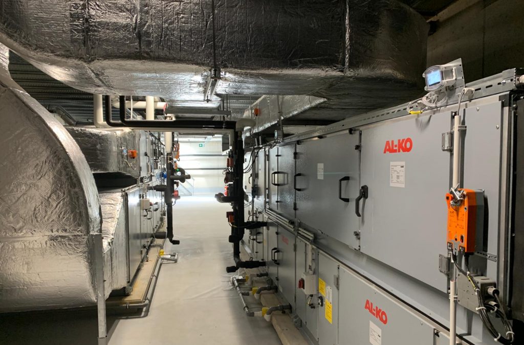 In de uitvoering liepen Lems en zijn collega’s tegen de nodige uitdagingen aan. “Bij traditionele beton- of staalbouw bouw je horizontaal en per verdieping. Hier was de houten opbouw geconstrueerd in verticale segmenten, waardoor de beschikbare werkruimte voor ons erg krap was. Ook krap was de planning: alle techniek moesten binnen drie maanden geïnstalleerd zijn. We begonnen in september; voor de kerst zaten alle leidingen erin.”