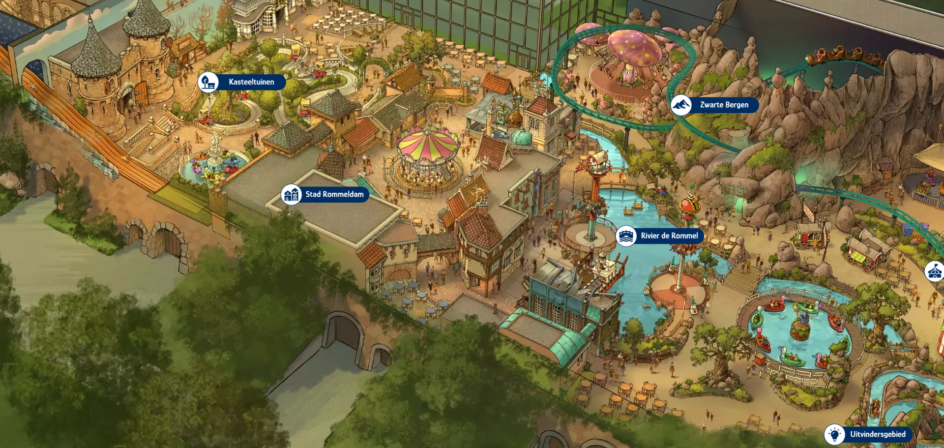 Het woord ‘impossible’ komt niet in Vincents woordenboek voor. “Na afloop staan we altijd samen, met een biertje in de hand, te kijken naar wat we hebben neergezet.” Het resultaat mag er zijn: Bommelwereld is een uniek park, prachtig aangelegd en tot in detail uitgewerkt. De rotsformaties en gebouwen zijn volledig gethematiseerd en zorgvuldig afgewerkt. Alles met liefde gemaakt, van hoogwaardige materialen. Zelfs de torens zijn geen simpele decorstukken, maar opgebouwd met echt leisteen. Het straalt kwaliteit uit. En misschien nog wel belangrijker: met techniek die je niet ziet, maar die wél perfect werkt. Magisch – en precies zoals bedoeld!