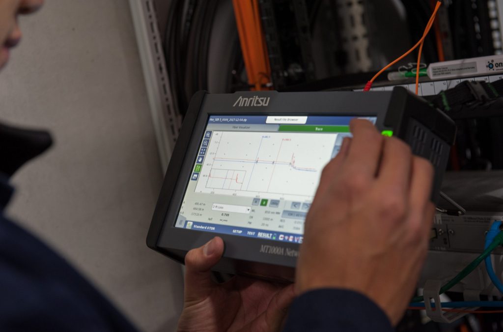 Dankzij die fijngevoeligheid van glasvezel (en van de meetapparatuur) kan Beijleveldt niet alleen zien dát er ergens in de draad iets verandert, maar ook tot op de centimeter precies wáár. “We kunnen heel secuur meten na hoeveel tijd de reflecties van zo’n lichtpuls terugkomen. Aan de hand van de snelheid van het licht kunnen we dan tot op de centimeter nauwkeurig de afstand berekenen tot de ‘hindernis’ die de reflectie veroorzaakt.”