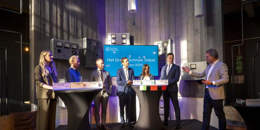 Aan het debat namen zes kandidaat-Kamerleden deel: Arend Kisteman (VVD), Tjebbe van Oostenbruggen (NSC), Sjoukje van Oosterhout (GroenLinks-PvdA), Michelle Jagtenberg (D66), Maes van Lanschot (CDA) en Daniël van den Berg (JA21). PVV, BBB en SP waren ook uitgenodigd, maar kozen ervoor niet met hun collega’s en de technieksector in gesprek te gaan. Tijdens het Grote Techniek Debat ging het onder meer over zero-emissiezones, verduurzaming van corporatiewoningen en het tekort aan technische vakmensen. Debatleider Roderik van Grieken (Nederlands Debatinstituut) vond dat de kandidaat-Kamerleden er een respectvol, constructief en inhoudelijk debat van maakten. “Zo zou het ook in de Tweede Kamer moeten.”