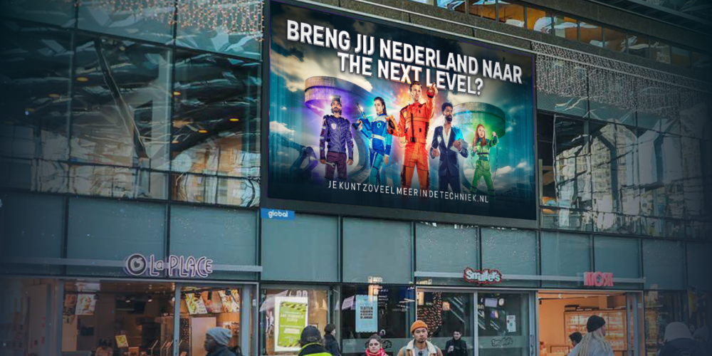 Ook op sociale media ging de campagne meteen goed los, via opvallende posts en video’s met de vijf techniekhelden in de hoofdrollen. Dankzij gerichte targeting op jongeren en zij-instromers van twintig tot veertig jaar haalde de campagne via Meta (Instagram/Facebook), Snapchat, TikTok en Google Ads in ruim zeven weken een bereik van 3,5 miljoen. Net zo imposant waren de outdoor-uitingen: op achttien plaatsen in het land was de campagne wekenlang te zien op digitale megaboards langs snelwegen, 2.740 digi-abri’s in 20 grote steden en 150 opvallende posities in de metronetwerken in Amsterdam en Rotterdam.