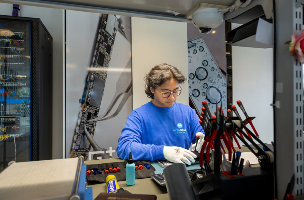 “Ik werk al bijna vijf jaar bij Megarepair.nl. In de begintijd studeerde ik economie en ondernemen en vervolgens een paar jaar game development. Ik begon op een andere afdeling, maar toen ik de kans kreeg om op de reparatieafdeling te werken, werd ik meteen enthousiast. Van technologie maakt mijn hart toch een sprong. Ik moest wel eerst bijscholing volgen.”