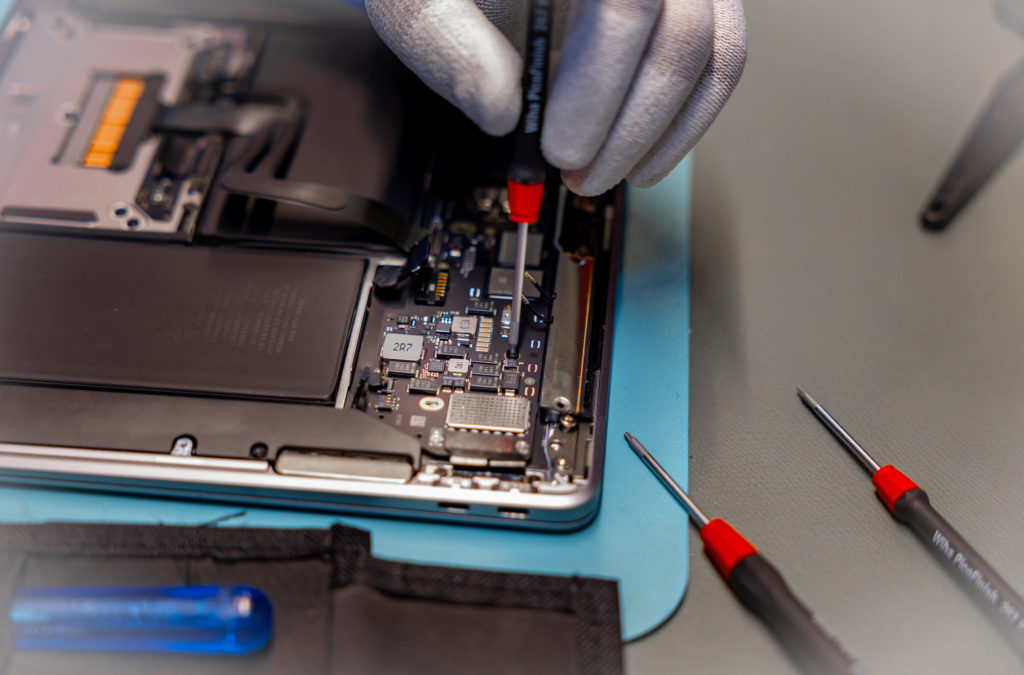 “Ik repareer smartphones, tablets en laptops. Ik vervang het scherm of de accu, maar vaak gaat het verder. Dan moet de technologie tot het laatste schroefje uit elkaar. Dat is meteen ook het leukst, als het echt een puzzel wordt. Maar bijna alles kunnen we repareren, ruim 90% krijgen we weer werkend. Alleen waterschade en problemen in het moederbord zijn vooralsnog lastig te herstellen.”